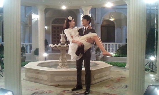 티격태격 베드신과 자동차 동침을 비롯해 황홀한 '계단 키스' 등을 통해 '폭풍 러브모드'를 가동시키고 있는 송승헌과 김태희가 '분수대 포옹신'을 통해 여심을 휘청이게 할 또하나의 '황실 러브신'을 펼쳐낸 것.