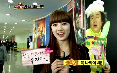 한편, 수지는 4일 방송된 MBC '위대한 탄생'에서 서울공연예술고등학교 친구인 황지환을 응원했다. 수지는 방송에서 "학교에서도 노래를 잘해서 유명한 친구다"라며 "지환아 네 실력 백 퍼센트 꼭 발휘하고 1등해"라며 격려의 메시지를 전했다.