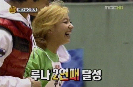 루나는 이날 높이뛰기 1m 43cm를 성공했으며 미쓰에이 페이, 애프터스쿨 가희와 접전을 벌이던 끝에 1위를 차지했다.