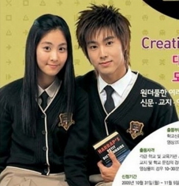 이 사진은 청소년을 대상으로 한 학교문집 공모전의 지면광고로, 사진 속 유노윤호와 서현은 교복을 입고 청순하고 앳된 모습을 보이고 있다.