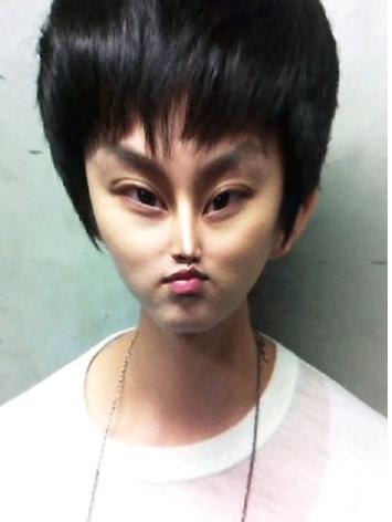 사진 속 김희철의 모습은 얼굴 가운데를 왜곡시켜 코와 입은 작고 이목구비가 가운데로 쏠려있어 마치 외계인을 연상케 한다.
