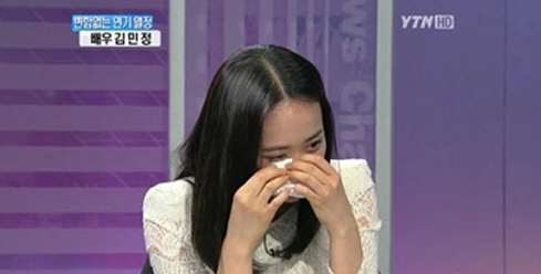 배우 김민정이 방송 출연도중 갑자기 눈물을 흘렸다.