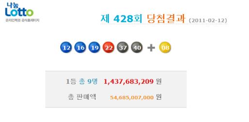 6개 당첨 번호를 모두 맞힌 1등은 9명으로, 14억3천768만원씩을 당첨금으로 받게 됐다.