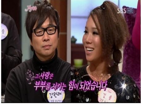 김송은 11일 방송된 SBS '스타부부쇼 자기야'에서 “어느 날 스포츠신문 1면에 우리의 결혼설가 났었다"라며 "당시 기사를 보고 이제 결혼하는구나라고 생각했는데 강원래가 부인했고, 2개월간 연락이 안 됐다"고 털어놓았다.
