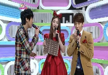설리는 13일 방송된 SBS ‘인기가요’에서 초콜릿모양의 깜찍한 헤어밴드를 가지고 출연했다.