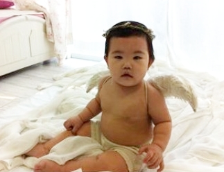 부모가 올린 사진 속 아라는 귀여운 하얀색 날개를 등에 매고 머리엔 작은 꽃 매듭을 달고 있는 등 아기천사의 모습이다.