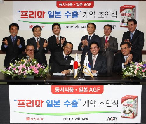 동서식품은 지난 14일 서울 본사에서 이창환 사장과 일본 AGF(Ajinomoto General Foods, INC.)의 카타야마 신수케 대표 등 관계자 10여명이 참석한 가운데 프리마 수출 계약 조인식을 가졌다고 15일 밝혔다.