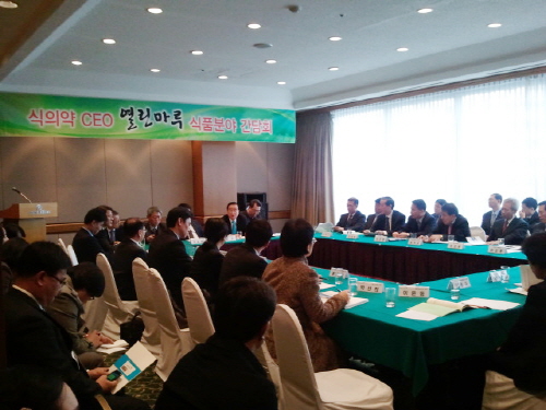 한편 식품업계는 이물질 보고 자율제 전환을 재차 요구하며 ▲어린이 기호식품 신호등표시제 도입의 애로사항  ▲유전자재조합식품(GMO) 표시제 완화 ▲일반식품 유용성 표시광고 허용 ▲산분해.혼합간장에 대한 유해물질 3-MCPD의 중복검사 면제 ▲의약품 원료 사용.납품시 약사 고용 규제완화 등을 건의했다.