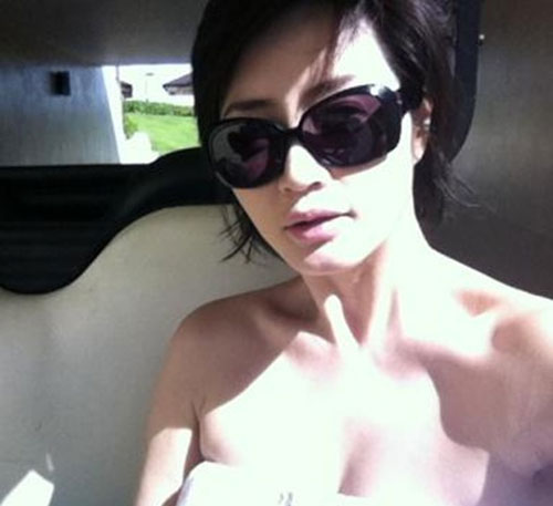 글래머러스한 몸매와 더불어 튜브탑 상의 위로 노출된 김혜수의 쇄골과 잡티 하나 없는 흰 피부도 돋보인다.
