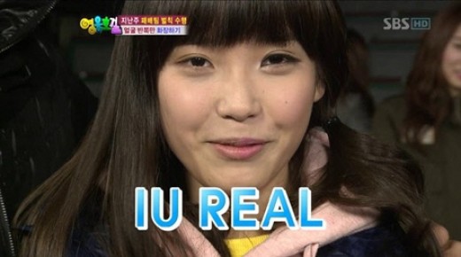 20일 방송된 SBS '일요일이 좋다-영웅호걸'에서 아이유는 반쪽 화장 굴욕을 당했지만, 화장을 한 부분이나 하지 않은 부분이나 크게 차이나지 않는 미모를 뽐냈다.