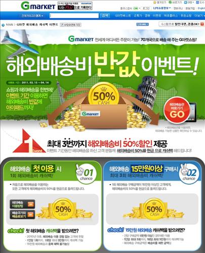 2010년 이후 해외배송을 처음 이용하는 고객에게는 1인당 1회, 최대 5만원까지 해외배송비 50%를 현금으로 돌려준다.