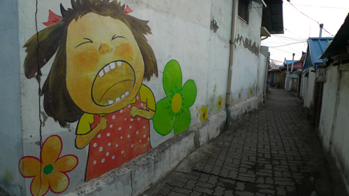 뱃속을 든든히 채운 다음에는 온갖 그림들로 가득 찬 담벼락을 구경하며 걸어보자. 수암골의 골목은 밭 ‘전(田)’자로 이어져 있어 길을 잃을 염려도 없다니 안심해도 좋다.
