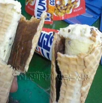 부산광역시 동래구에 사는 김 모(여.25세)씨는 지난 20일 동료들과 함께 롯데제과의 '월드콘' 9개를 구입해 먹으려다 속이 텅 빈 것을 보고 깜짝 놀랐다. 1천500원짜리 아이스크림콘의 내용물은 절반도 되지 않았다.