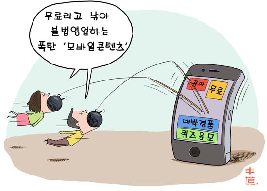 최근 지하철이나 버스정류장 등 공공장소에서 ‘휴대폰으로 퀴즈풀면 경품 제공’이라는 무선콘텐츠 업체들의 광고를 어렵지 않게 접할 수 있다.