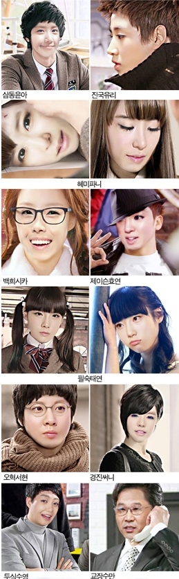 특히 소녀시대 멤버들의 외모와 성격, 특징 등과 드라마 속 캐릭터들의 특색을 고려해서 포토샵으로 합성해 더욱 눈길을 모으고 있다.