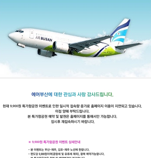 만 원으로 제주도 여행 기회를 제공한다는 소식이 전해지면서 25일 에어부산 홈페이지 서버가 마비돼 화제다.