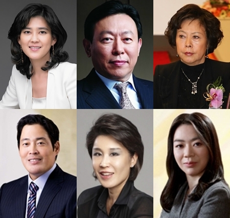 ▲왼쪽 위부터 시계방향으로 이부진 호텔신라 사장, 신동빈 롯데그룹 회장, 신영자 롯데쇼핑 사장, 한진 조현아 전무, 정용진 신세계 부회장, 정유경 신세계 부사장