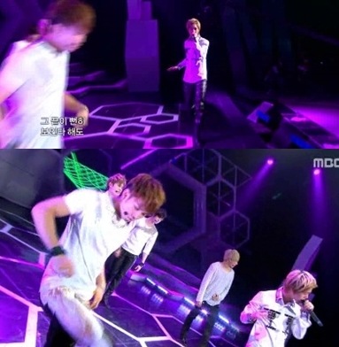 허리부상을 입었던 엠블랙 미르가 무대에서 짧지만 강렬한 존재감을 뽐냈다.