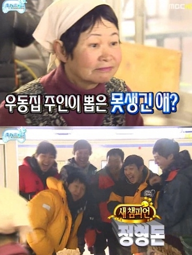 얼굴을 찬찬히 살핀 우동집 주인은 가장 못생긴 멤버로 박명수를 제친 채, 정형돈을 지목했다.