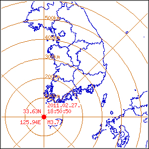 이번 지진은 올들어 3번째로 기록됐다. 기상청은 27일 오후 6시 50분쯤 제주시 서북서쪽 57 km 해역에서 리히터 3.7 규모의 지진이 발생했다고 밝혔다. 이는 지난 2년 동안 제주 해역에서 발생한 지진 가운데 가장 규모가 큰 것으로 알려졌다.
