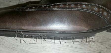 별생각없이 밑창만 확인한 선 씨는 집으로 돌아와서야 구두의 옆부분이 사포질을 한 것처럼 가죽이 벗거져 있고, 구두의 뒷부분은 폭 0.2mm, 길이 2cm 가량 칼에 베인 듯한 선명한 자국이 난 것을 확인했다.