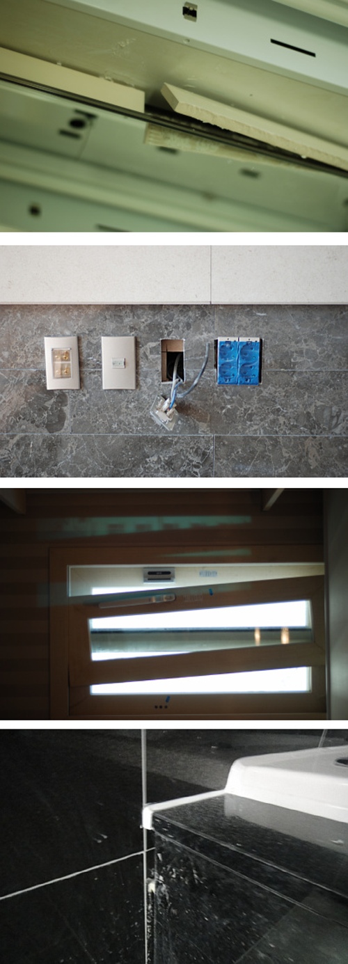입주예정자 박모(남.51세)는 "수억원의 돈을 지불하고 구입한 신축 아파트가 마치 사람이 몇십년 살다가 나간 흉가처럼 타일은 절반만 붙어 있고, 전기 콘센트는 제자리에서 이탈해 바깥으로 튀어나와 있으며, 마감재 실리콘 처리는 반만 돼 있는 등 뭐 하나 제대로 된 게 없었다"고 분통을 터트렸다.
