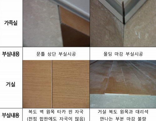 이 관계자는 이어 "대리석 민원의 경우, 한 집에 광택이 있는 제품과 없는 제품이 섞여 사용됐다는 내용인데, 검사결과 두 제품이 동일한 소재로 만들어져 품질에 차이가 없는 까닭에 법적으로는 문제가 되지는 않는다"고 덧붙였다.