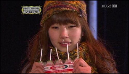 수지는 상대 배우 택연과 관람차 키스신을 찍던 중 웃음NG를 내 의혹을 샀고 촬영 중 배가 고픈지'꼬르륵' 소리가 나 '우리 수지 배고파요'라는 자막이 나갔다.