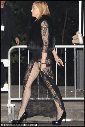 이날 마돈나가 망사 스타킹을 착용하고 속이 비치는 레이스로 된 치마를 입어 엉덩이 골격이 그대로 노출됐다.