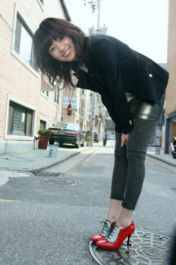 미녀배우 한효주가 킬힐을 신은채 맨홀 위에서 찍은 사진 한 장이 관심을 집중시키고 있다.