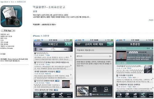 한편 <소비자가 만드는 신문>의 1차 어플이었던 '소비자고발' 역시 지난해 12월 앱스토어와 안드로이드 마켓에 등록된 후 석 달 동안 다운로드 횟수가 8만건 이르며 폭발적인 관심을 받았다.