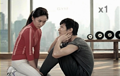 원빈은 광고 속에서 여성 트레이너가 코칭을 할 때는 부드럽게 윗몸일으키기를 하다가 남성 트레이너가 등장하자 빠른 속도로 윗몸일으키기를 실시해 웃음을 자아내게 한다.