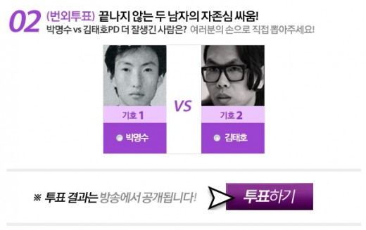 지난 '오호츠크해 특집'에서 외모논쟁을 벌였던 박명수와 김태호PD의 외모투표도 눈길을 끈 바 있다.