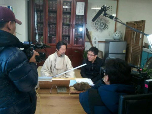 사진속에서 김제동의 광선검을 선물 받은 강기갑의원은 흐뭇한 미소을 짓으며 광선검을 지켜보고 있다.
