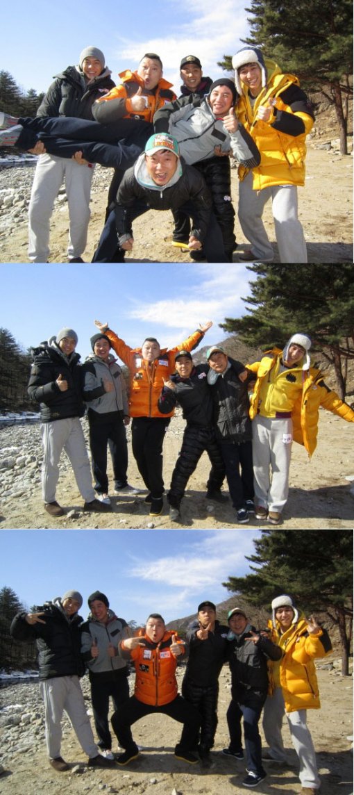 멤버들은 1박 2일의 대표 포즈인 엄지손가락을 들어 올리는 사진과 함께 옆으로 누운 엄태웅을 힘을 모아 받들고 있는 포즈 등 화기애애한 분위기를 연출하고 있다.