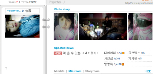 <▲가해자가 사진을 무단으로 가져간 조 씨의 미니홈피>