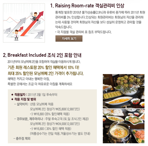 이어 “특히 투숙객들에게는 일반인보다 저렴한 가격에 식사를 제공하기 때문에 고객들의 호응도 높을 것으로 판단했었다”며 “불만사항이 있다면 회원들의 의견을 재검토해 볼 것”이라는 입장을 밝혔다.