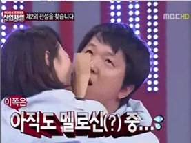 이날 문 아나운서와 정형돈이 짝을 이뤄 입으로 종이를 옮기는 게임을 하다가 지나치게 얼굴을 부비적거리는 장면이 화면에 잡힌 것.