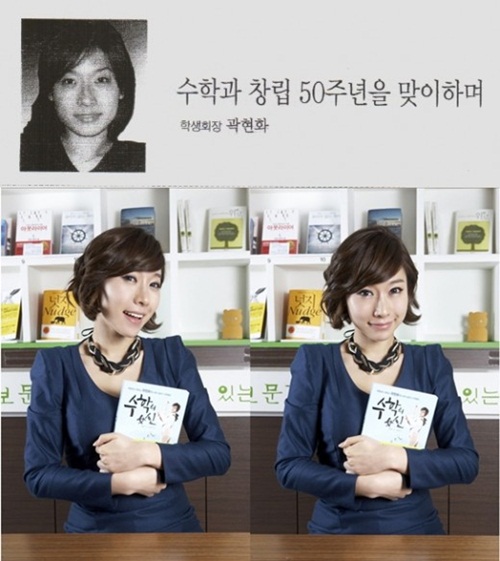 URL복사 기사공유하기 스크랩 프린트 메일보내기 글씨키우기 ‘이대 나온 여자’로 유명한 개그우먼 곽현화가 대학시절 사진을 공개했다.곽현화는 최근 자신의 미투데이에 “학생회장 시절 이화여대 수학과 50주년 기념글을 발견했다”는 글과 함께 과거 사진을 게재했다. 이화여대 수학과 학생회장 출신인 곽현화는 “큰 마음먹고 공개하는 거에요. 알아요. 전 지금이 제일 예쁜 것 같아요”라고 밝혔다.한편 곽현화는 최근 연예인 최초로 수학책 ‘수학의 신’을 집필해 엄친딸로서의 면모를 과시했다. 저작권자 © 소비자가 만드는 신문 무단전재 및 재배포 금지 온라인 뉴스팀 다른기사 보기 URL복사 기사공유하기 주요기사 "상담사 말대로 문 앞에 뒀는데 분실"…통신장비 위약금 부과 분통 배달앱 다회용기 서비스 늦장 회수로 불만 폭증 손보사들 '간병보험 특약' 출혈경쟁 괜찮나?...손해율 경고등 GS리테일 '25조 매출 목표' 절반 못 미쳐...해외 확장도 공수표 '수수료 완전 무료' 메리츠증권, 해외주식 거래 1.2조→160조 폭증 현대차, 중국 판매 '79만대→16만대' 추락 끝났나?...7년 만에 반등
