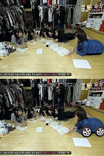 공개된 사진 속 티아라 멤버들은 바닥에 앉아 자기소개서를 쓰고 있다. 이중 은정이 휴대폰 폴더 같은 자세로 앉아 마치 하체가 없는 듯한 모습을 보여 눈길을 끈다.