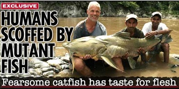 지구촌 오지에서 거대하고 특이한 물고기를 찾아다니는 생물학자 겸 베테랑 낚시꾼 제레미 웨이드(54)는 수년 전 인도 북쪽지방 칼리 강에서 성인 남성 3명이 들 정도의 거대한 괴물 메기의 실체를 확인했다.