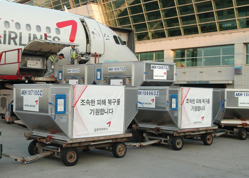 아시아나항공이 대지진으로 막대한 피해를 입은 일본 재난지역 주민들을 돕기 우해 긴급구호물품을 전달키로 했다.