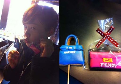 사진 속 그는 파란색과 핑크색인 손바닥 보다 작은 모형의 명품백을 들고 환한 미소를 짓고 있었다. 심지어 모형은 고무로 된 액세서리였다.