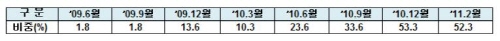 한편, 스마트폰 본격 대중화는 SK텔레콤의 신규/기변 고객 중 스마트폰 선택 고객 비중의 꾸준한 증가에서 확인할 수 있다. 2009년 12월에는 신규/기변 고객 중 스마트폰 고객이 13.6%에 불과했으나, 2010년 6월에는 23.6%, 2010년 12월에는 53.3%로 크게 증가했다.