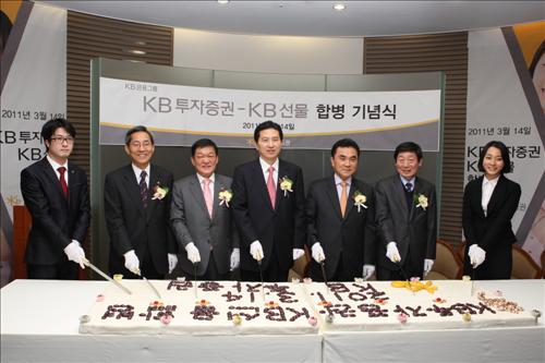 KB투자증권은 이날 KB금융지주 임영록 사장과 증권, 선물 양사 사장이 참석한 가운데 합병기념식을 갖고 선물 업무를 개시했다.