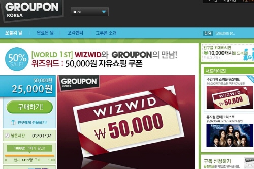 회사 측은 이날 정오부터 글로벌 쇼핑몰 위즈위즈의 5만원 권 상품권 50% 할인을 시작으로 전국 서비스에 들어갔다. 런칭과 동시에 서울, 경기, 부산, 대구, 광주, 대전 등 전국 서비스를 시작했다. 오는 4월까지 서비스 지역을 서울과 경기 등 기존 6대 지역에서 울산, 창원.마산, 거제.진주, 천안.아산 등 10개 지역으로 확대할 계획이다.