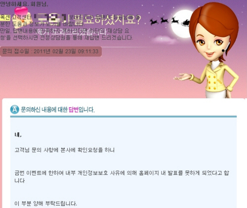 이에 대해 옥션 관계자는 “당초 2월26일 공지할 계획이었지만 담당자의 개인사정으로 다소 지연됐다. 고객들이 불편을 겪지 않도록 최대한 빨리 공지할 방침”이라고 해명했다.