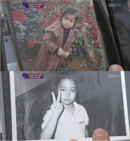 어린시절 사진은 지금과 똑같이 큰 눈망울과 오똑한 코를 가지고 있어 한눈에 알아볼 수 있을 정도.