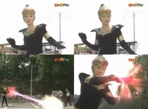 영상 속 엄지원은 타이트한 검은색 의상에 인도식 금관을 쓰고 광선을 쓰고 있다. '벡터맨'은 어린 시청들로부터 선풍적인 인기를 끌며 일본을 비롯한 세계 시장에 수출된 작품이다.