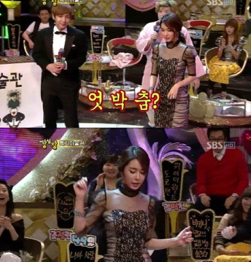 유인나는 지난 15일 방송된 SBS 예능프로그램 '강심장'에 출연해 개인기로 엇박댄스를 선보였다.